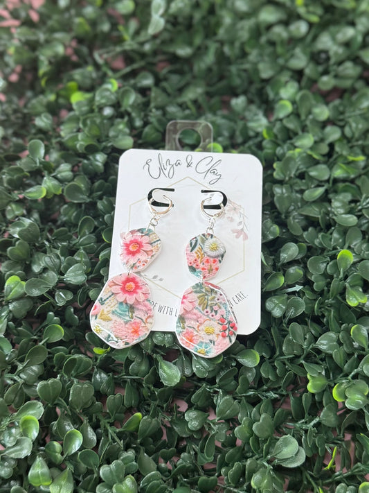 Arch 3D Flower Earrings With Leaf & Pearl Stud