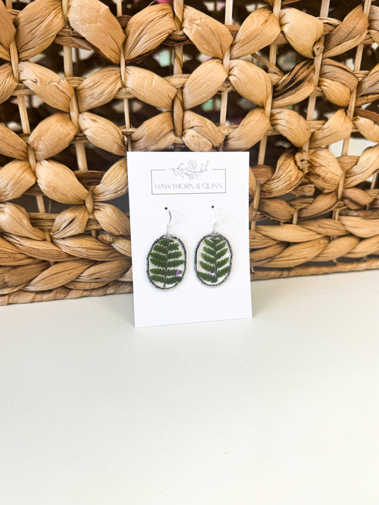 Oval Greenery Resin Dangle Earrings