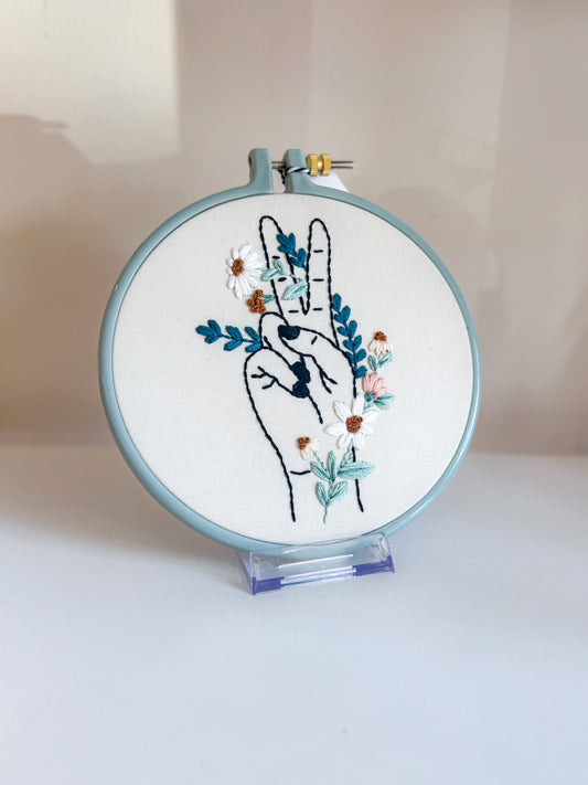 Peace And Floral Embroidery Wall Art