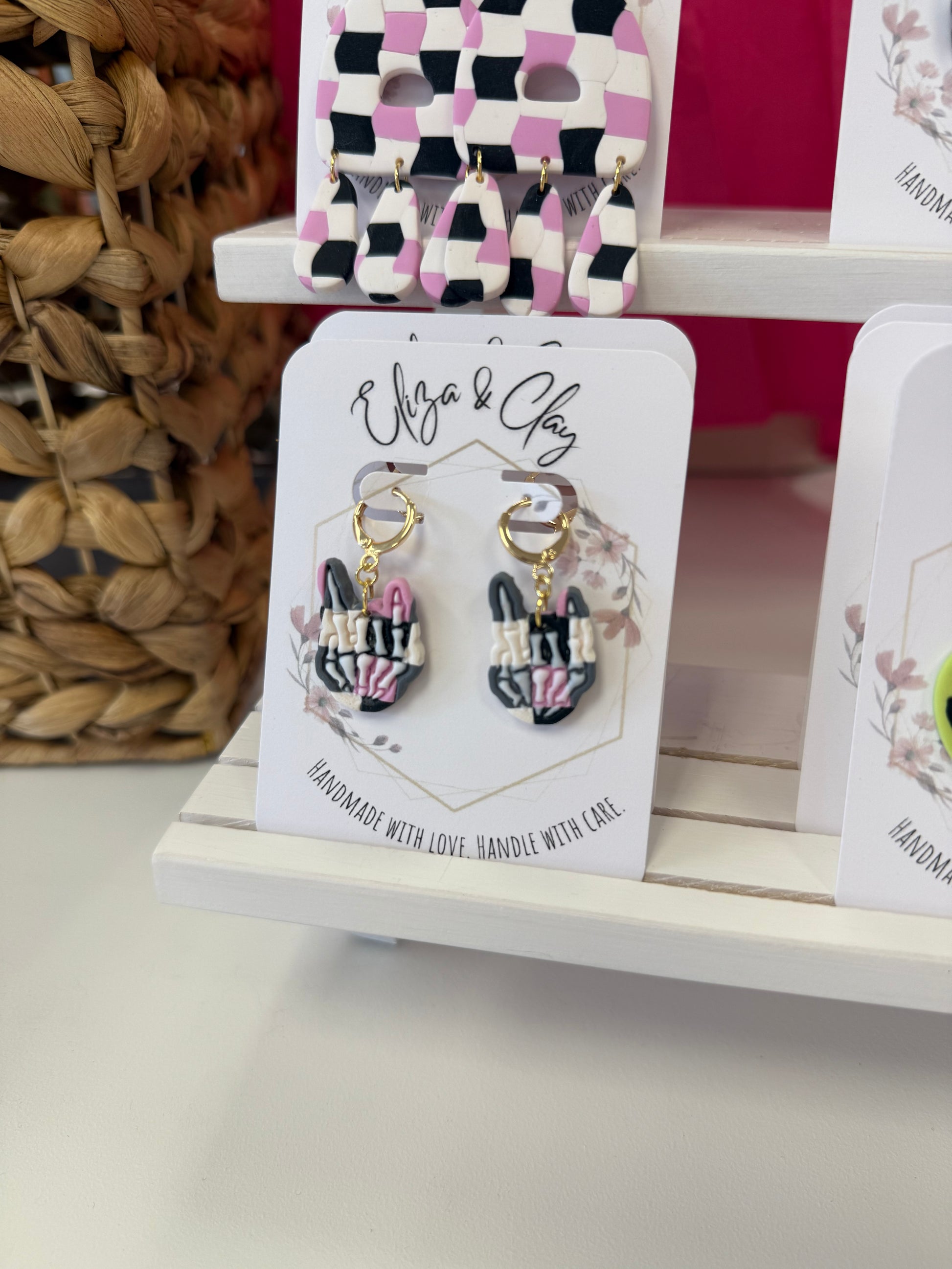 Handcrafted with love, Each unique pair is carefully handmade by Eliza and Clay, featuring various shapes and sizes to showcase your individual style. Elevate any outfit with our exquisite dangles and studs, making a statement that is both bold and timeless.
