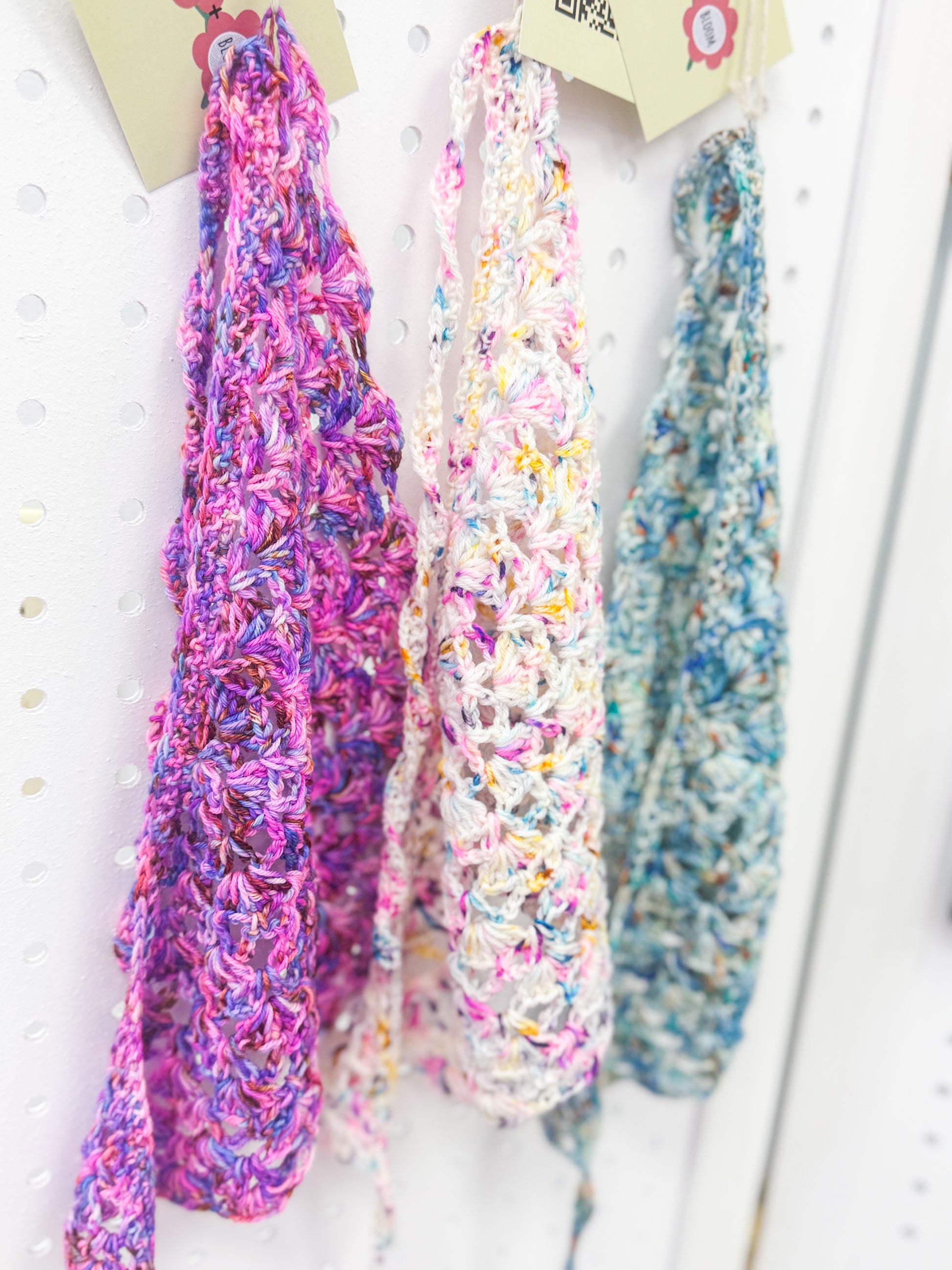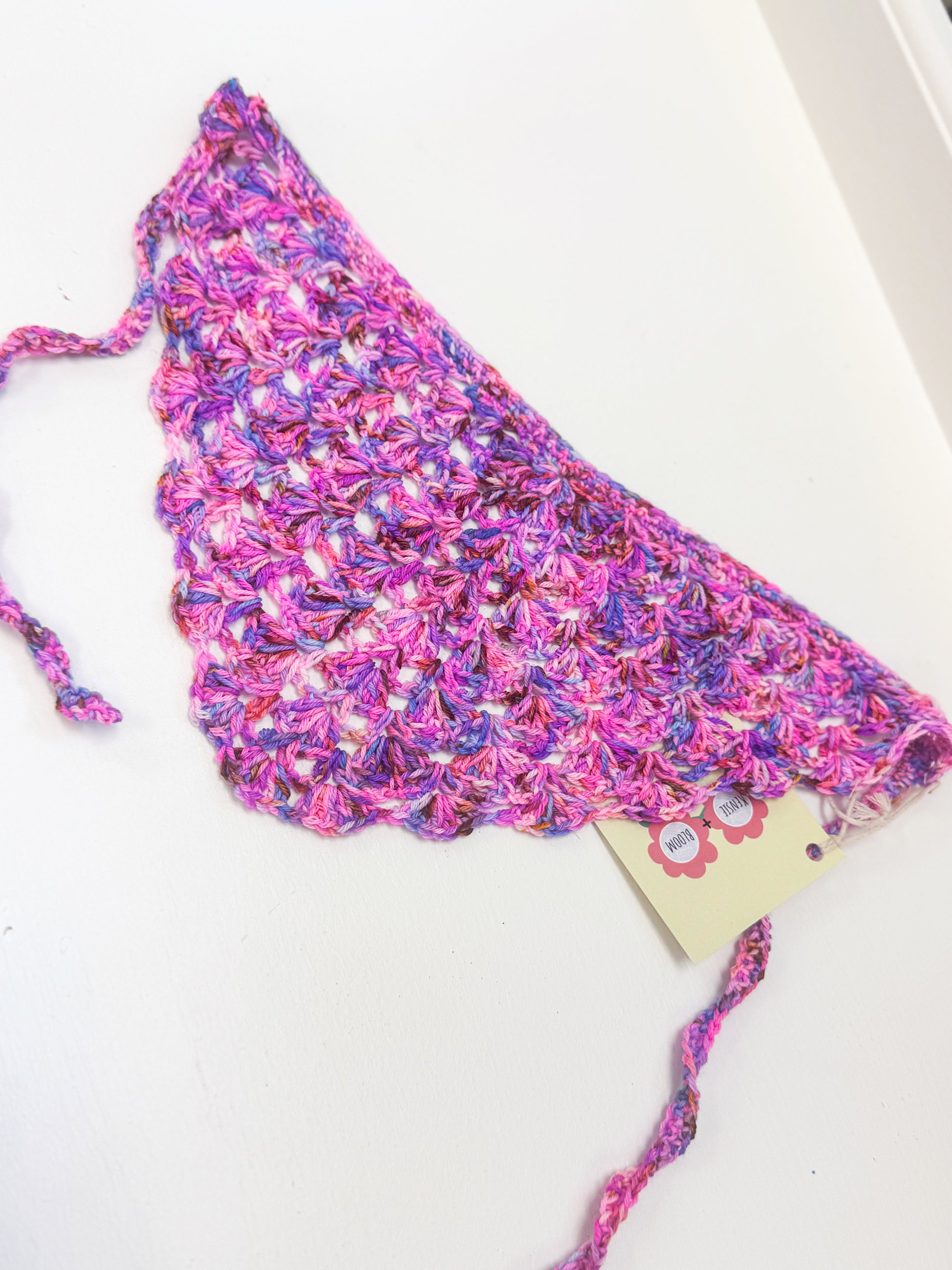 Indulge in the unique beauty of our Crochet Bandana. Handcrafted with love, our bandanas are made from hand dyed wool and nylon, creating a one-of-a-kind look. Stand out from the crowd with these gorgeous handmade pieces. Each one is a work of art, adding a touch of personality to any outfit.