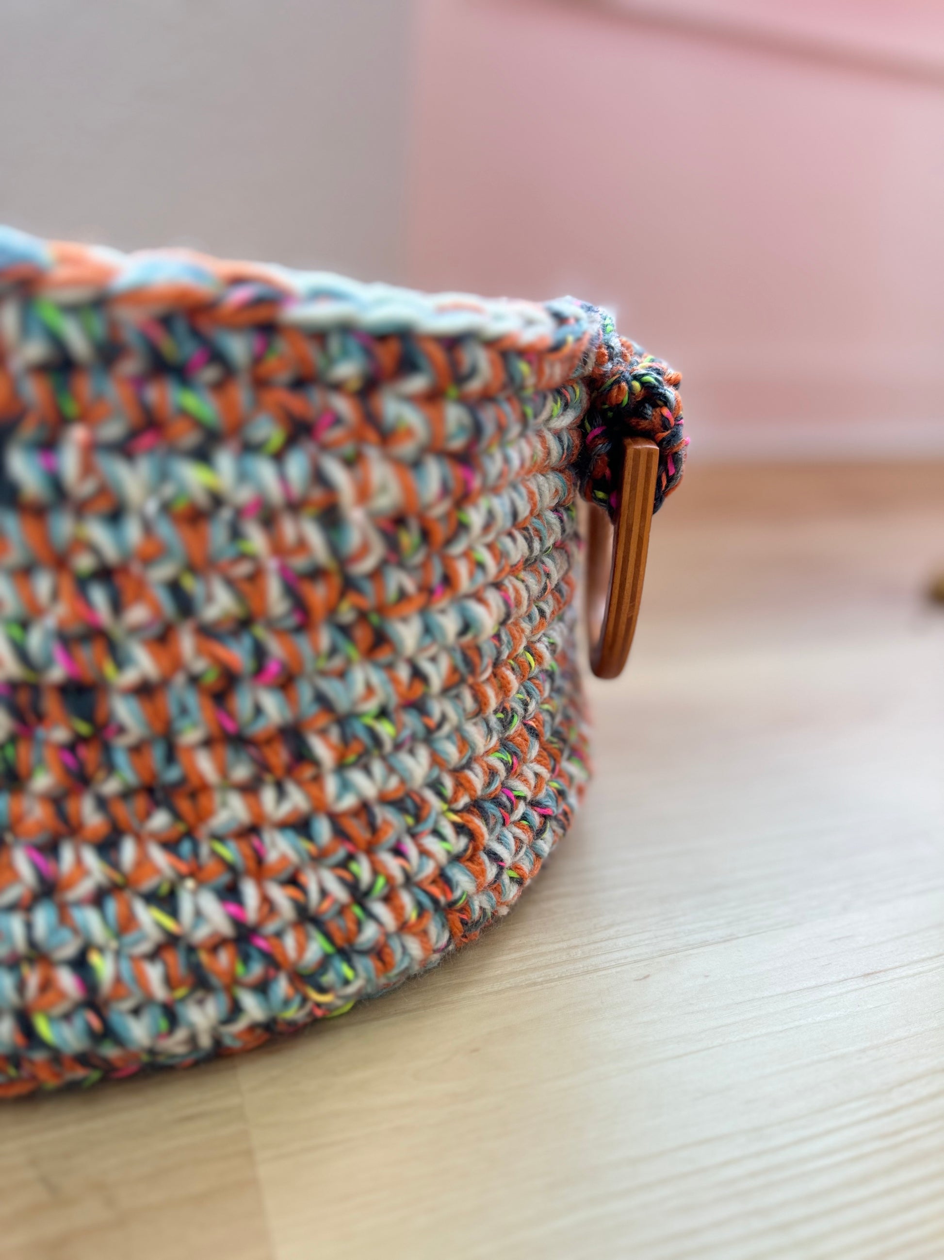 Handmade by Lisa, these Crochet Baskets are the perfect storage solution. With its sturdy wooden or crochet handles and wooden bottom, this basket adds a touch of personality to any room. Keep your belongings organized and stylishly displayed with this unique piece. (Crafted with love and crocheted to perfection!)