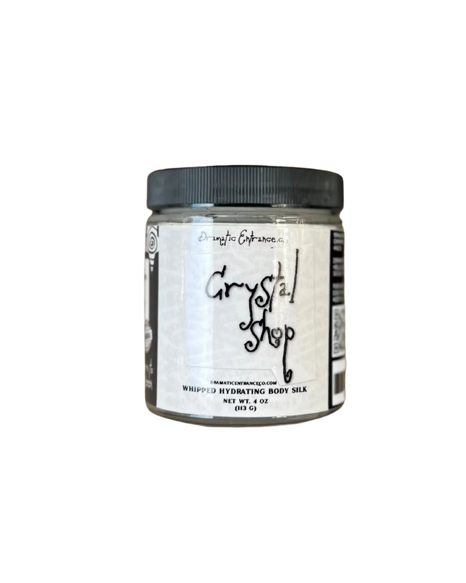 This is your new secret weapon for fighting dry, rough skin. Our Dramatic Entrance co, whipped hydrating body silks use effective natural ingredients like Shea and Mango butter. Along with nourishing Hempseed, Sunflower, and Sweet Almond oils. Paired with Soothing Kaolin Clay, this butter is made to effortlessly banish dryness and lock in moisture, with a non-greasy, velvety finish resulting in luscious skin. Our Alluring “Crystal Shop” scent smells like you just stepped foot into your favorite metaphysical market . With notes of lush fig, honeyed black tea, and smokey cedarwood and musk, this earthy aroma will be sure to turn heads and last all day doing it. On top of being a bewitching fragrance, this skin loving concoction comes in a glass reusable container. We encourage our customers to remove the label, wash out the jar, and reuse when you are finished. Good for your skin, Kinder to the planet.