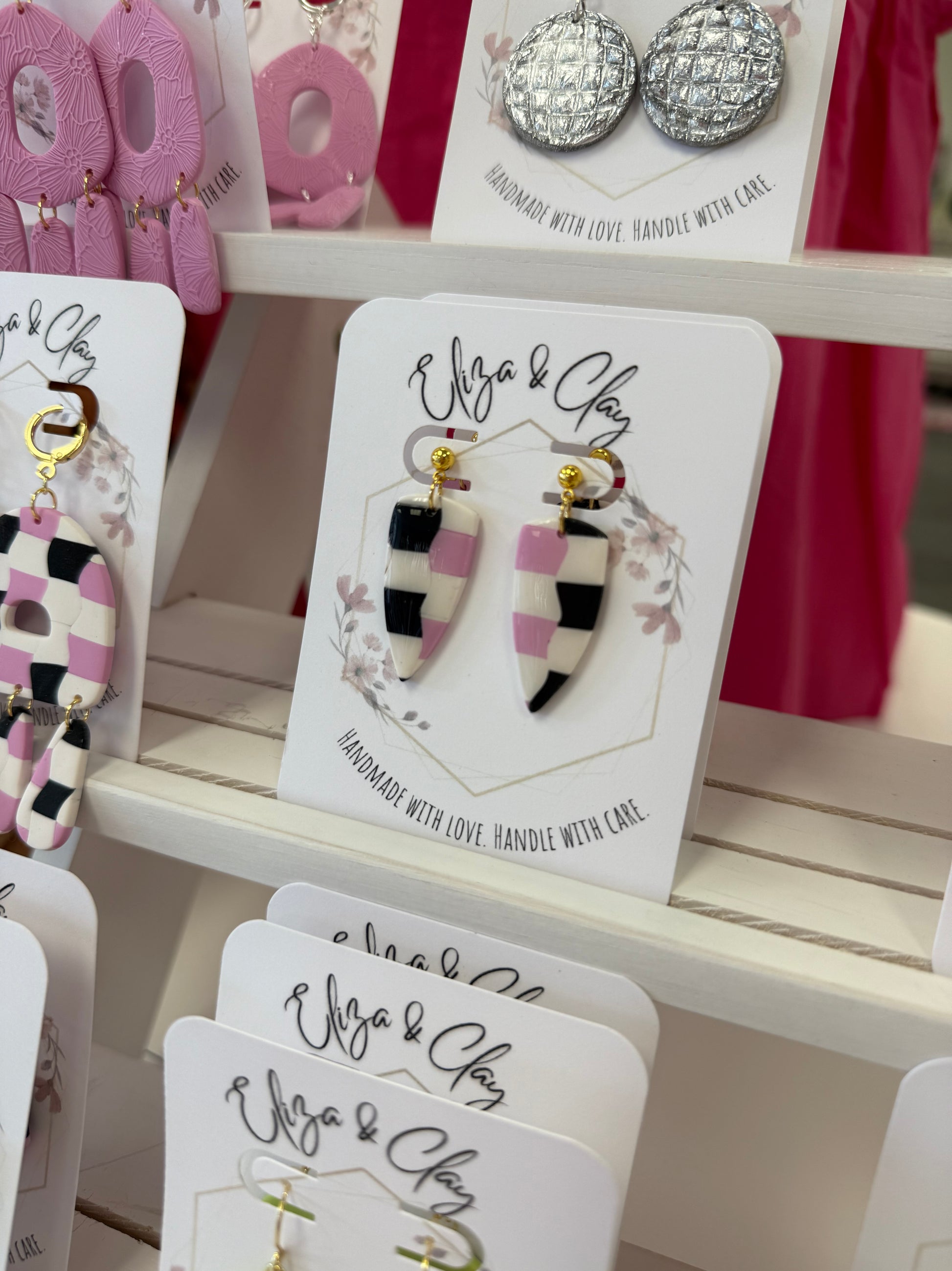 Handcrafted with love, Each unique pair is carefully handmade by Eliza and Clay, featuring various shapes and sizes to showcase your individual style. Elevate any outfit with our exquisite dangles and studs, making a statement that is both bold and timeless.