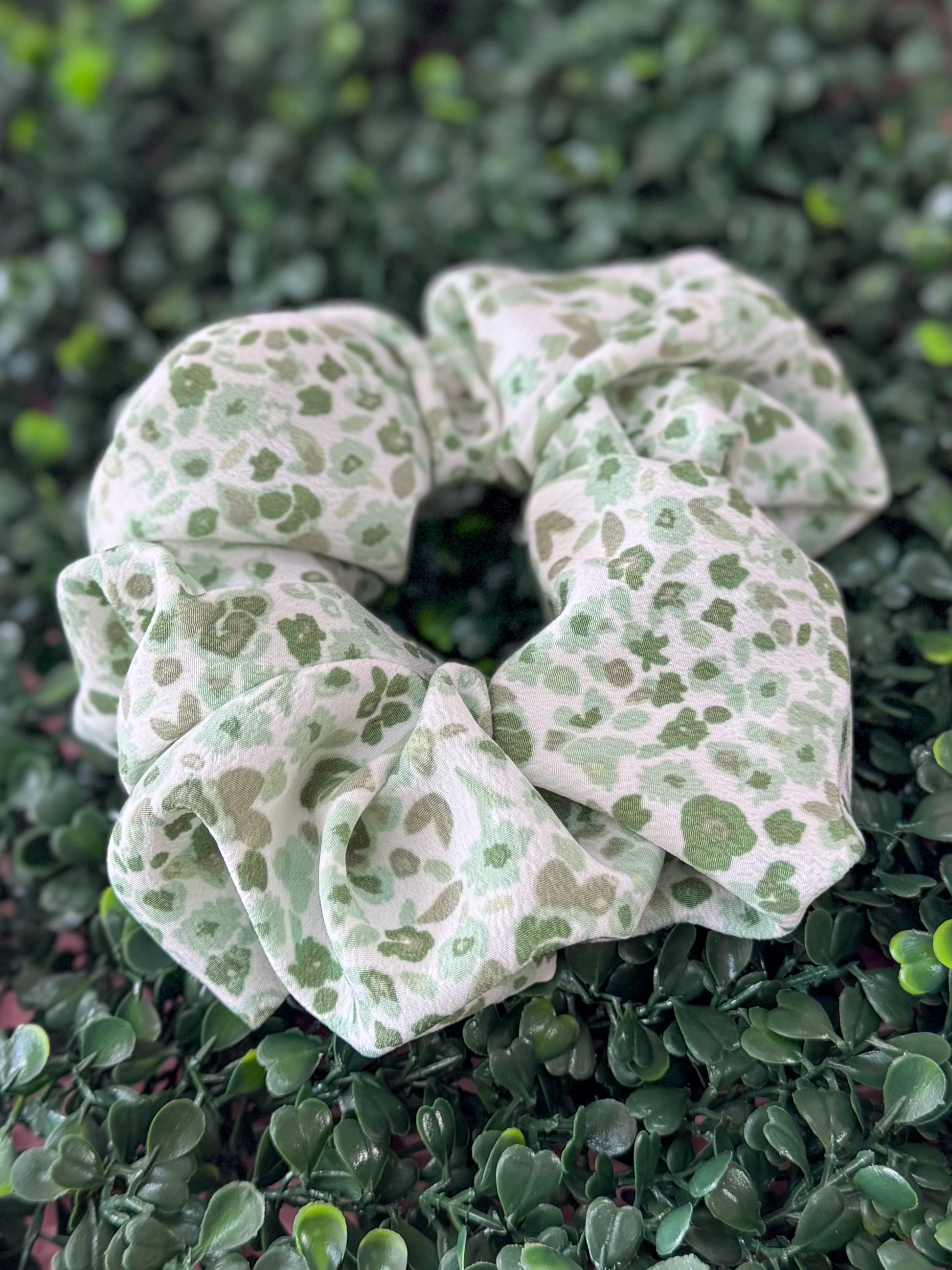 Looking for the next big trend? This oversized scrunchie is the perfect accessory for any outfit. Its green floral pattern adds a touch of fun to your hair, while keeping it securely in place. Say goodbye to boring hair days with our Green Floral Scrunchie!