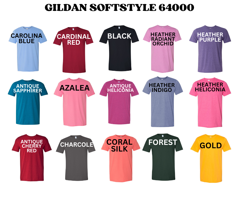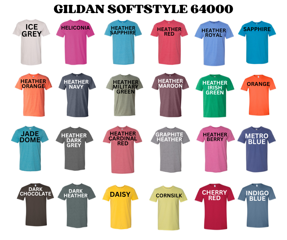 Gildan's Softstyle line offers lighter weight, 100% ring spun cotton for a softer feel and a slightly more fitted, modern look, while the Heavy Blend line provides a thicker, more durable, and warmer fleece or cotton-polyester blend designed for heavy wear, comfort, and cooler conditions. The choice depends on whether you prioritize a premium, soft touch (Softstyle) or a robust, warm, and durable garment (Heavy Blend). *If you would like Heavy Blend instead of SoftStyle please send me a DM*