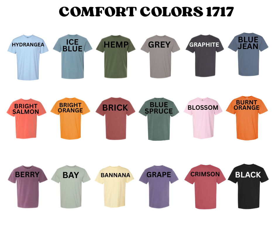 Size Small-4XL for comfort colors shirts