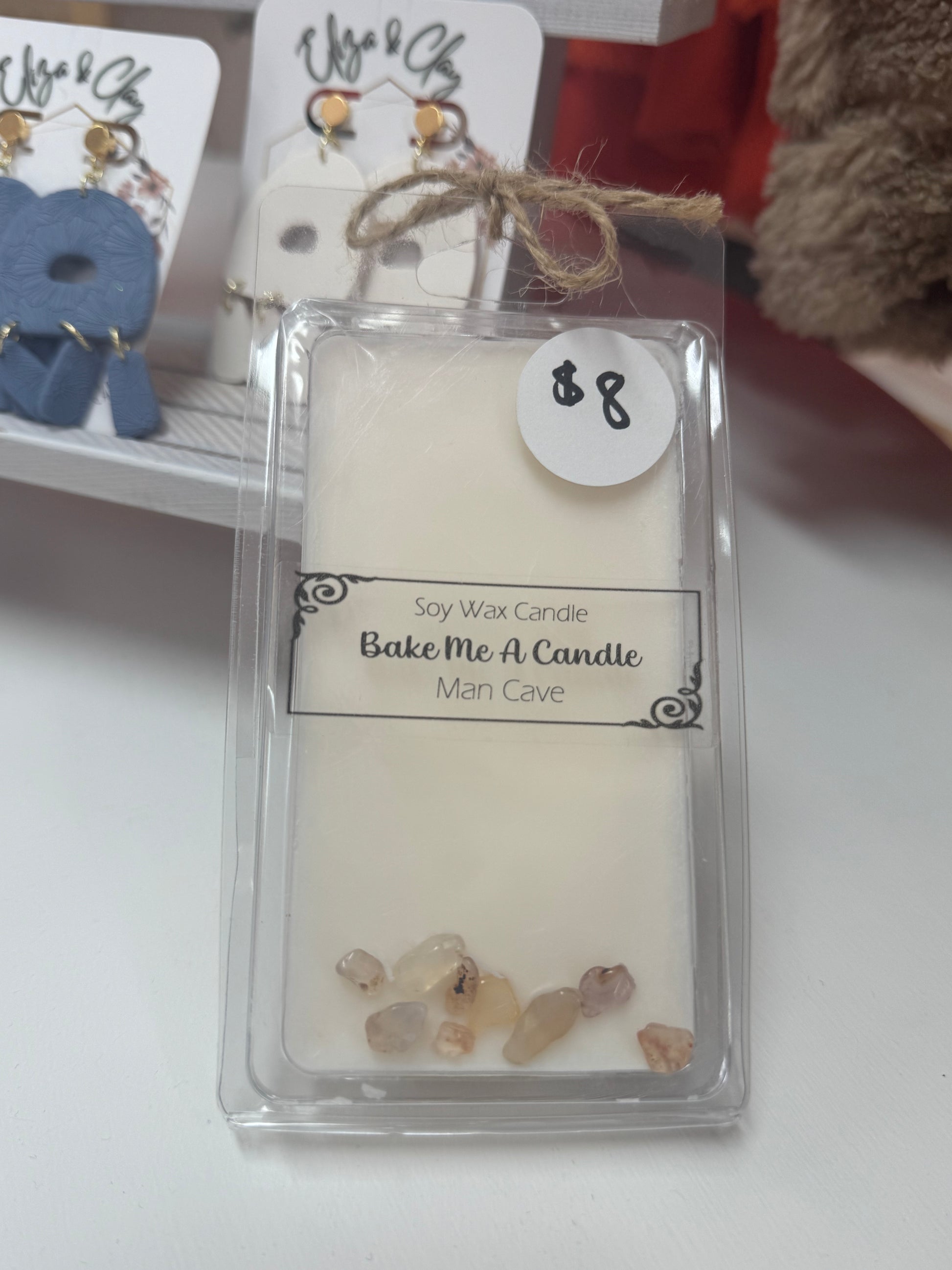 Warm masculine fragrance. A mix of florals and patchouli. Topped with earthy colored stones. Colors will vary. Each hand-crafted candle contains 100% natural soy wax and premium quality vegan fragrance oil. This allows them to burn cleaner and last longer than typical store-bought candles.