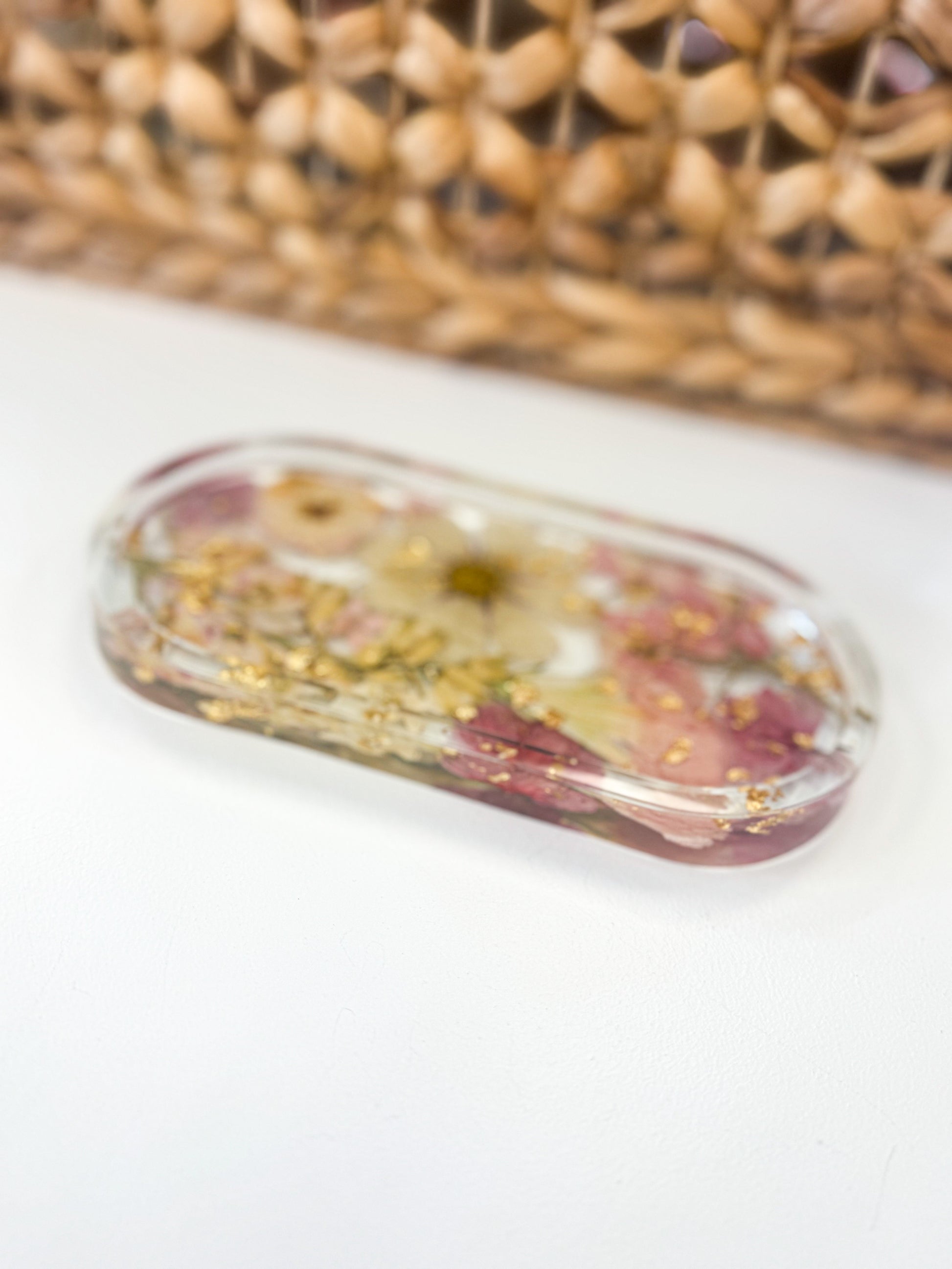Elevate your jewelry organization with our exquisite Floral Resin Jewelry Trays. These beautiful trays not only add a touch of elegance to your dresser or vanity, but also keep your jewelry organized and easily accessible. Perfect for displaying your favorite pieces and preventing tangles.